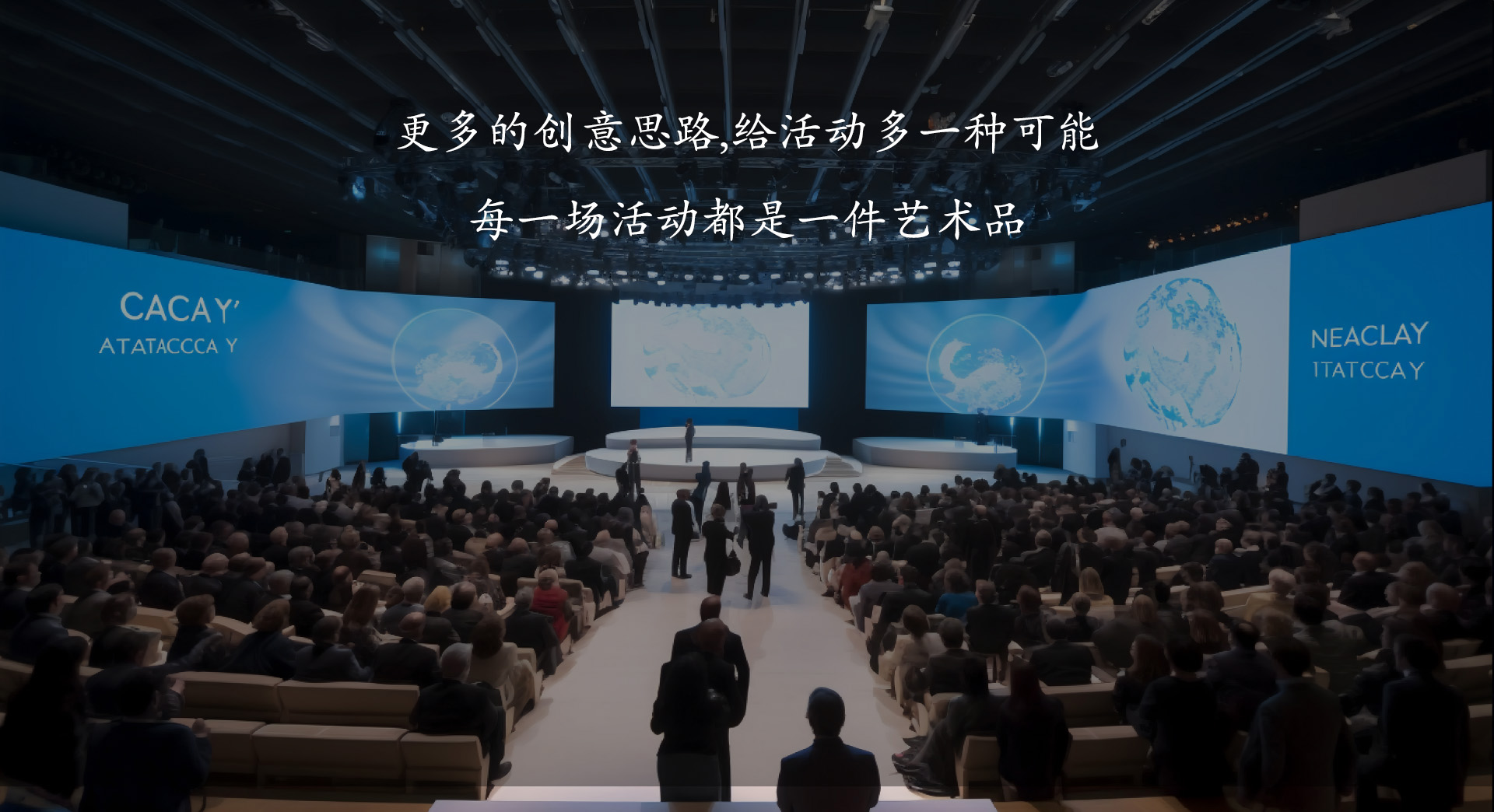 - 专业的工程部根据现场平面布置图,会场场景设置及舞美效果进行现场搭建布局,并及时跟客户反馈搭建进度。